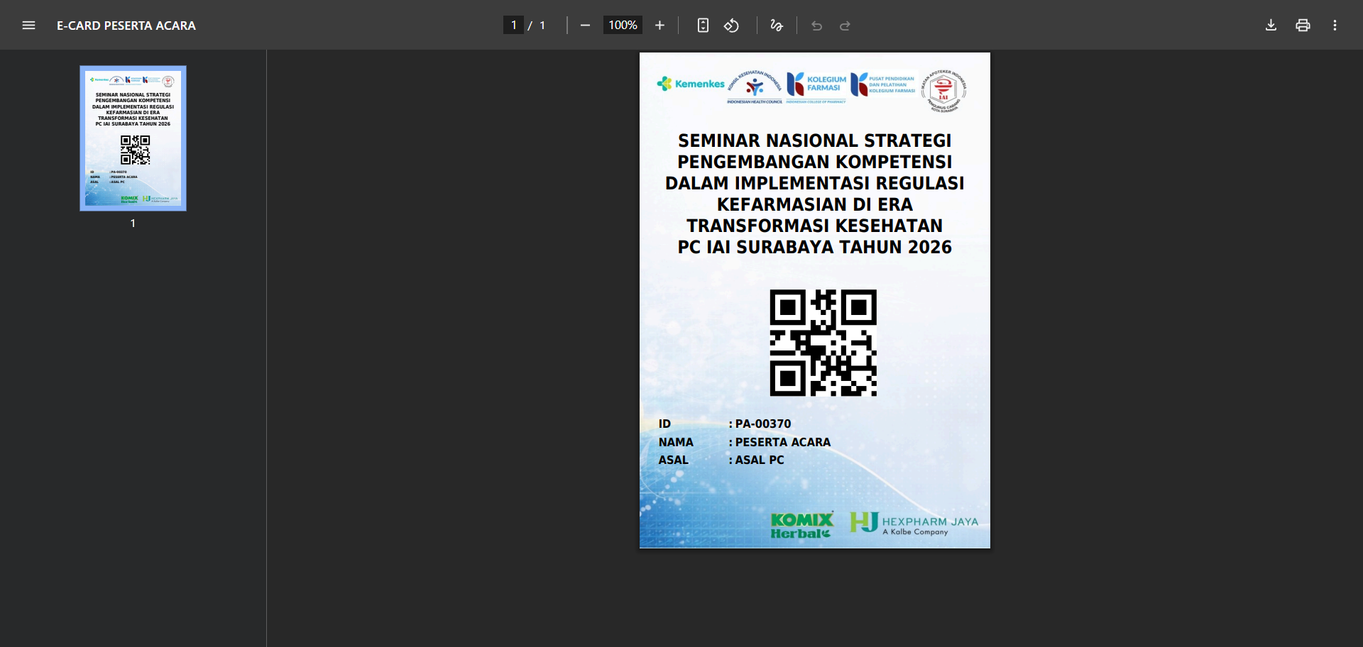 • Jika sudah lanjutkan dengan cara klik tombol CEK ID CARD, lalu sistem akan melakukan pengecekan terlebih dahulu apakah data anda sudah terbaca oleh sistem bahwa sudah melakukan pembayaran atau belum. apabila data anda sudah melakukan pembayaran maka otomatis akan muncul ID CARD anda yang sudah sesuai dengan event yang diikuti. jika benar, maka akan muncul tampilan untuk mencetak atau mendownload ID CARD milik anda. seperti gambar dibawah ini.